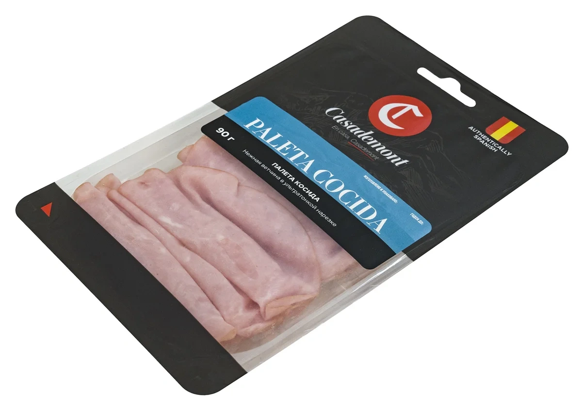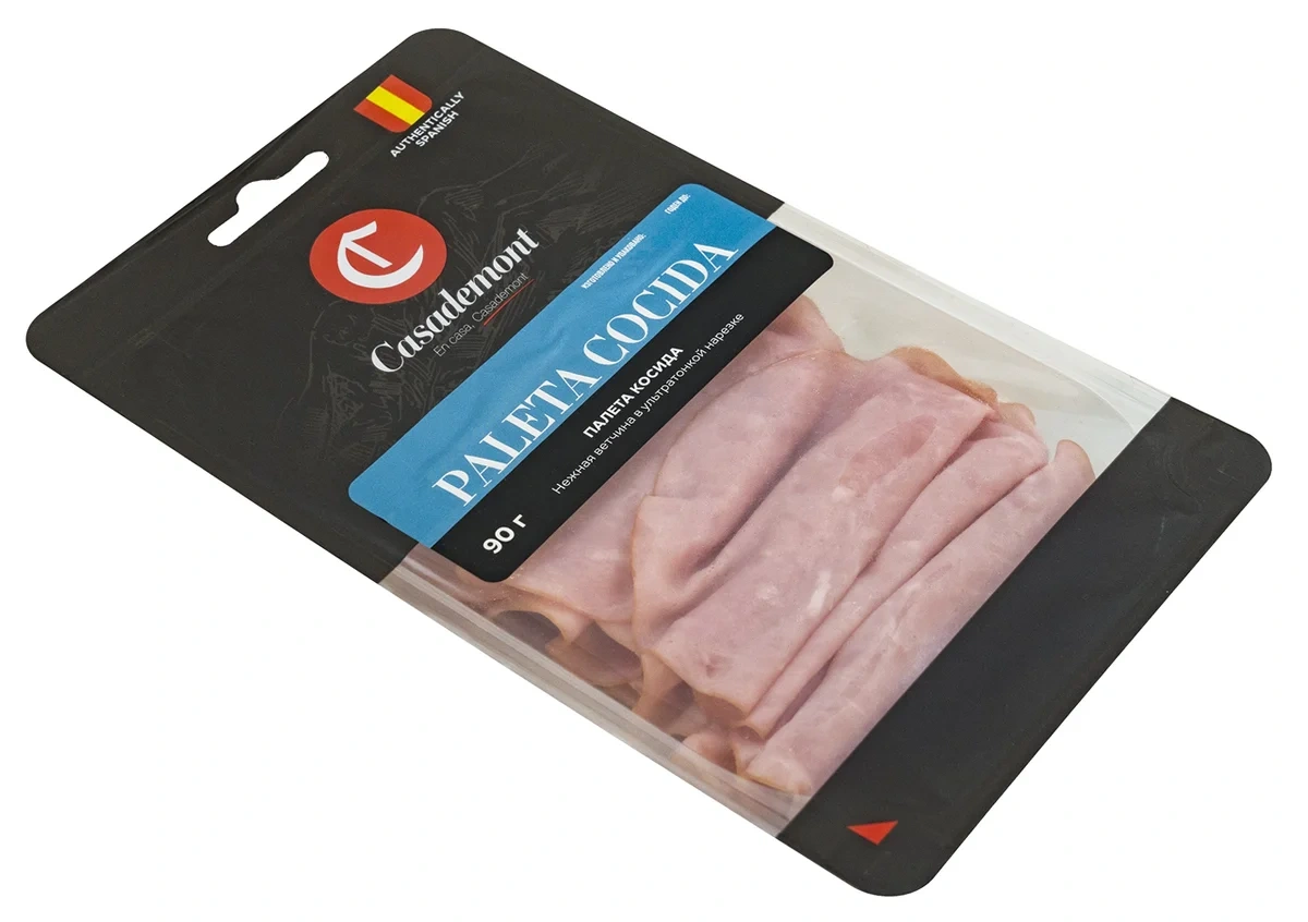 Традиционная испанская ветчина с монолитной структурой и неповторимым натуральным вкусом. Для её изготовления используются такие же свиные окорока, как и для приготовления знаменитого сыровяленого хамона (Jamon Serrano). Традиционно хамон подаётся в качестве закуски к аперитиву, его сервируют с дыней и свежим хлебом. Ветчина станет сытной основой для сэндвичей, канапе, салатов и сервировки мясной тарелки.