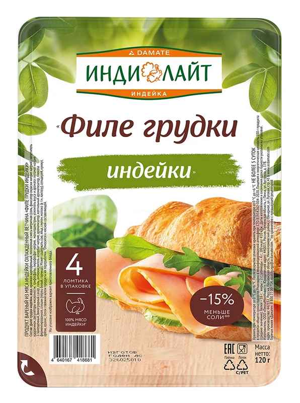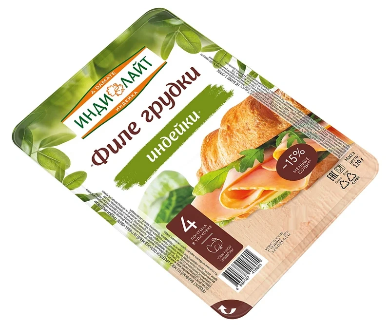 Ветчина Индилайт филе грудки индейки нарезка, 120г
