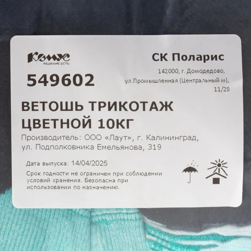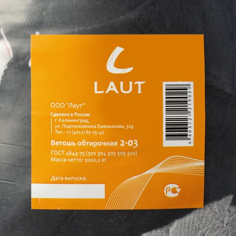 Ветошь обтирочная из хлопчатобумажных и смешанных текстильных материалов. Предназначена для использования в качестве обтирочного материала (удаление загрязнений с поверхности оборудования, тары, рук