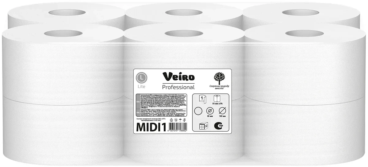 Туалетная бумага Veiro Professional Midi1 в рулоне, 1 слой, 180м, натуральный цвет