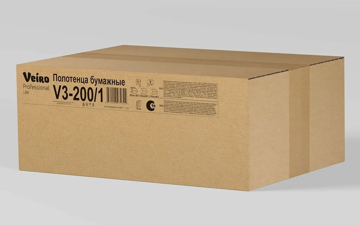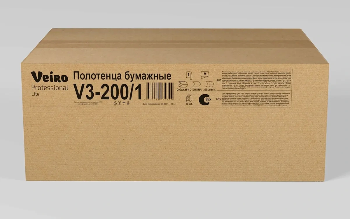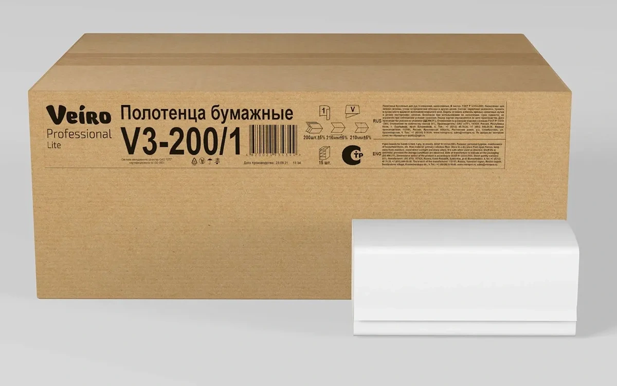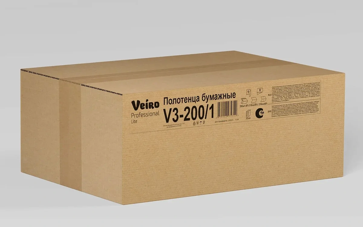 Бумажные полотенца Veiro Professional V3-200С листовые, 1 слой, 200шт, белые, V-сложения