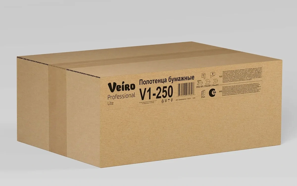 Бумажные полотенца Veiro Professional V1-250 листовые, 1 слой, 250шт, белые, V-сложения