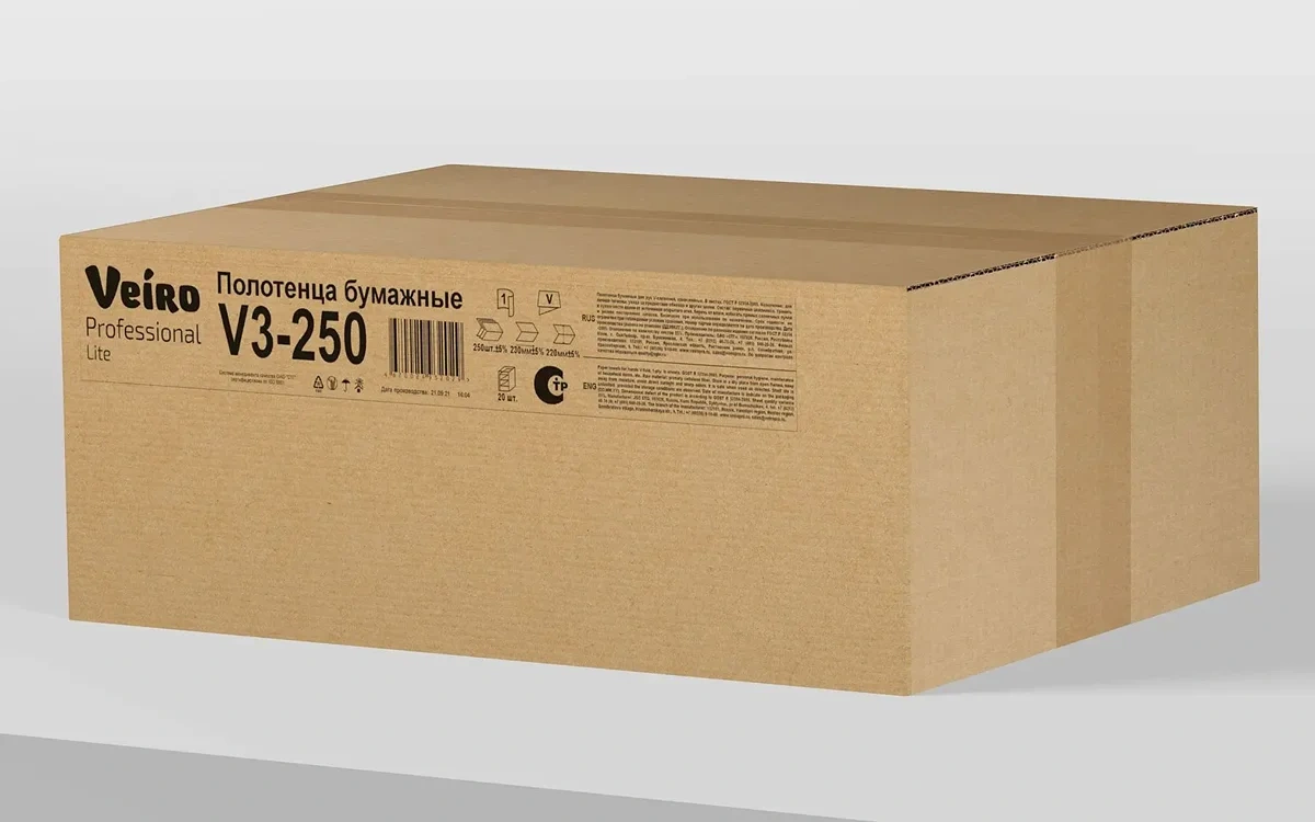 Бумажные полотенца Veiro Professional V3-250 листовые, 1 слой, 250шт, белые, V-сложения