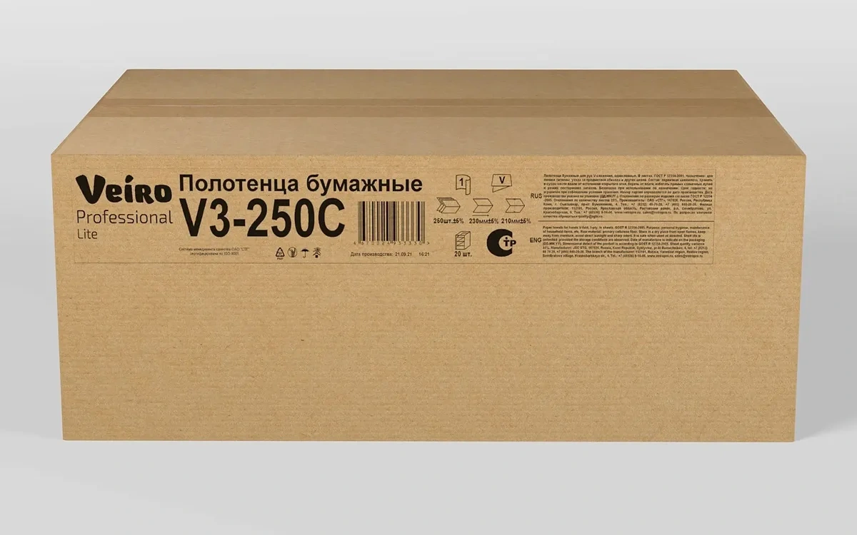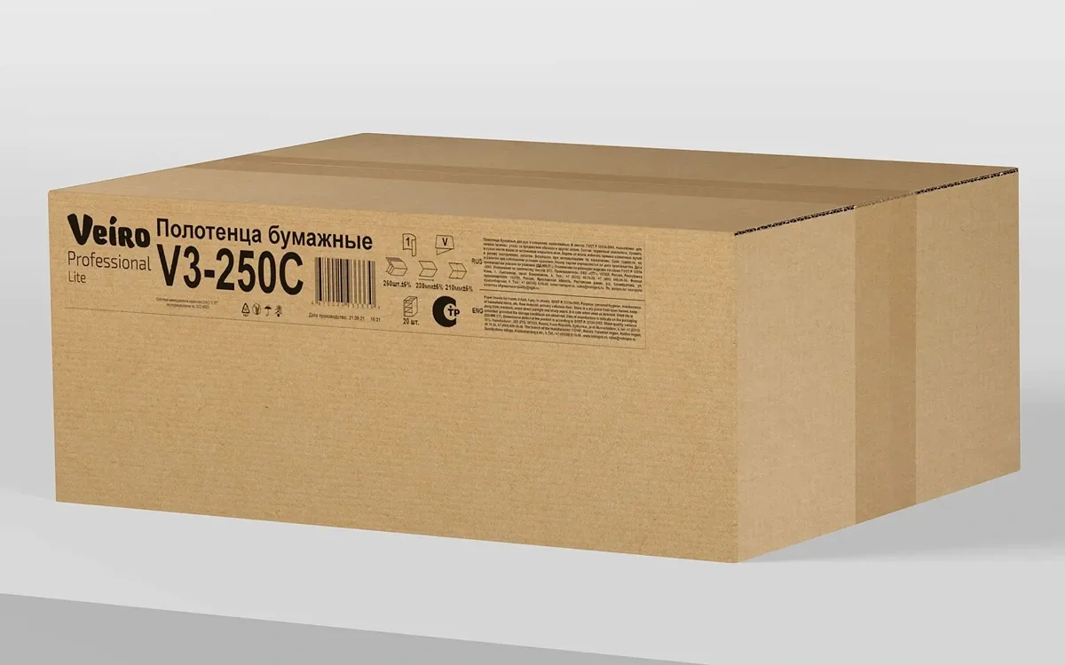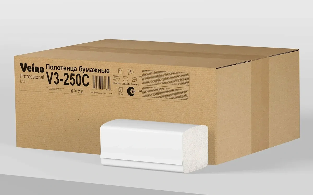 Бумажные полотенца Veiro Professional V3-250С листовые, 1 слой, 250шт, белые, V-сложения