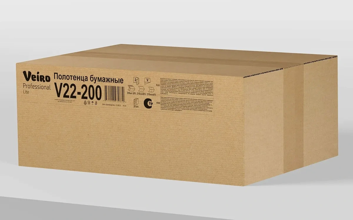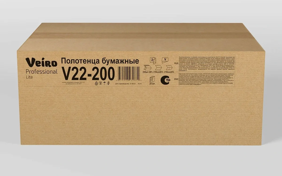 Бумажные полотенца Veiro Professional V22-200 листовые, 2 слоя, 200шт, белые, V-сложения