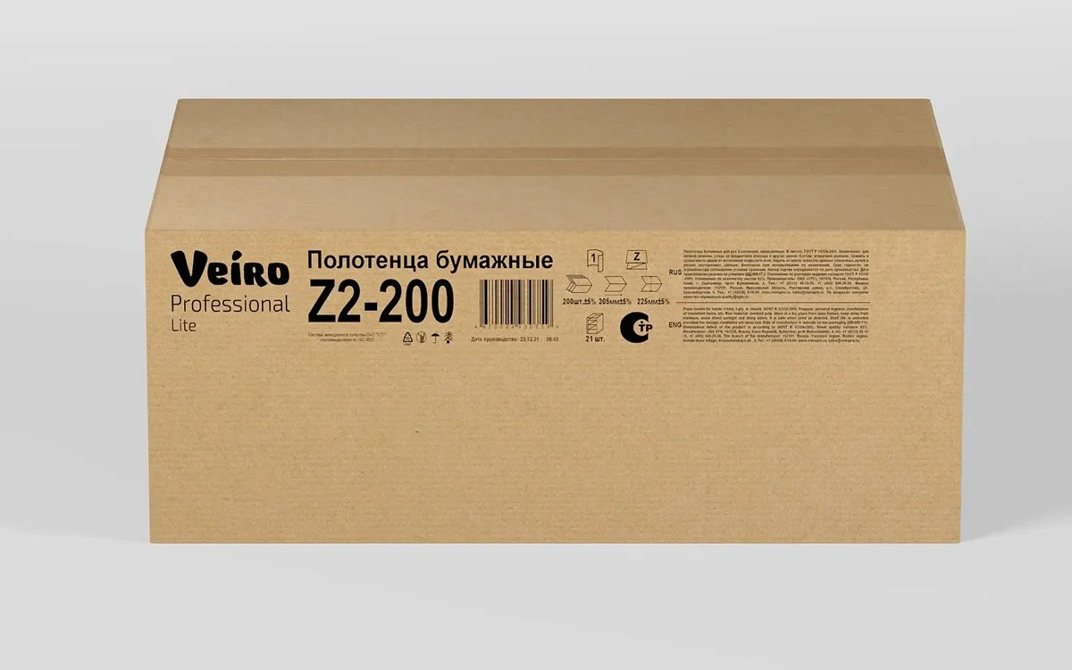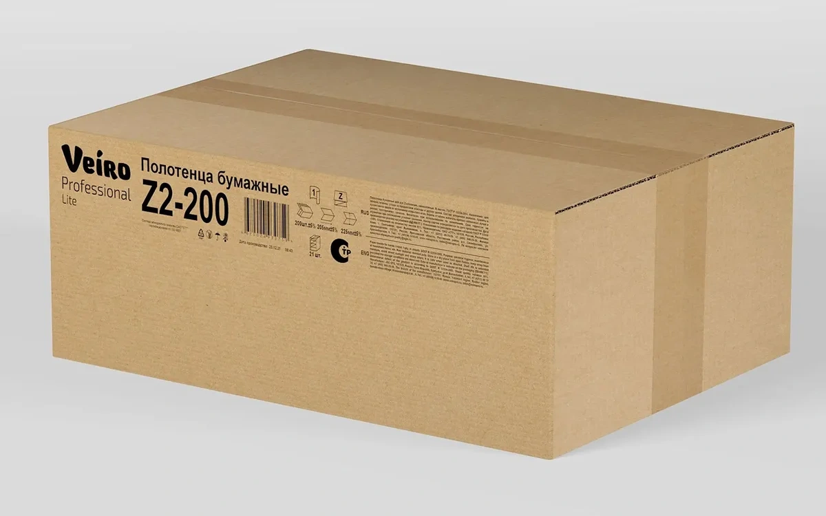 Бумажные полотенца Veiro Professional Z2-200 листовые, 1 слой, белые, 200шт, Z-сложения