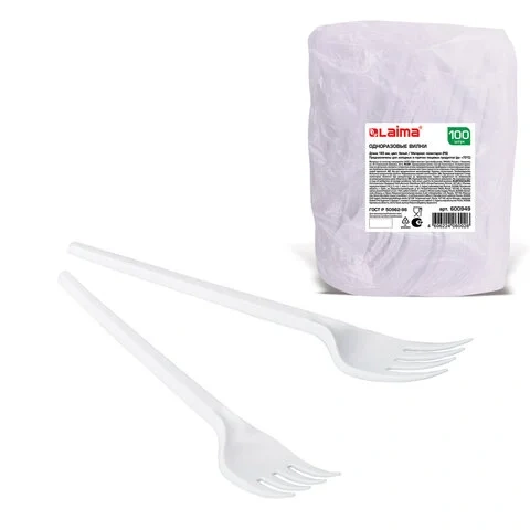 Вилка одноразовая Laima Бюджет белая, 16.5см, 100шт/уп, бюджет