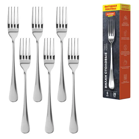 Вилки столовые STANDARD, КОМПЛЕКТ 6 шт., полированная нержавеющая сталь, серебристые, DASWERK, 60907