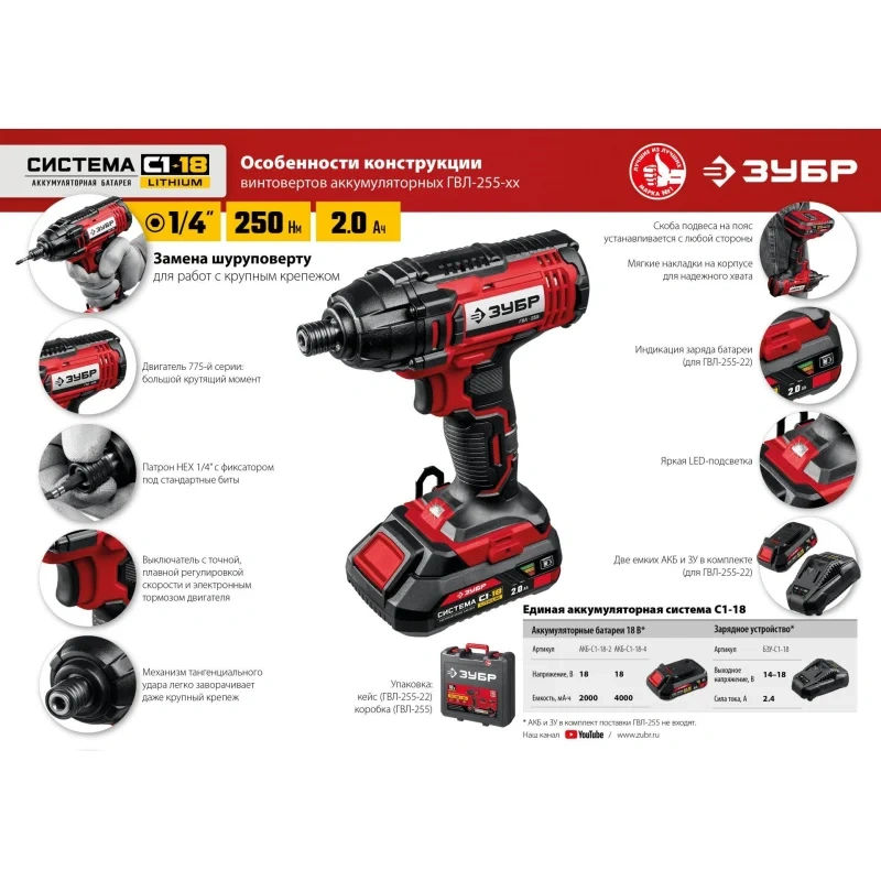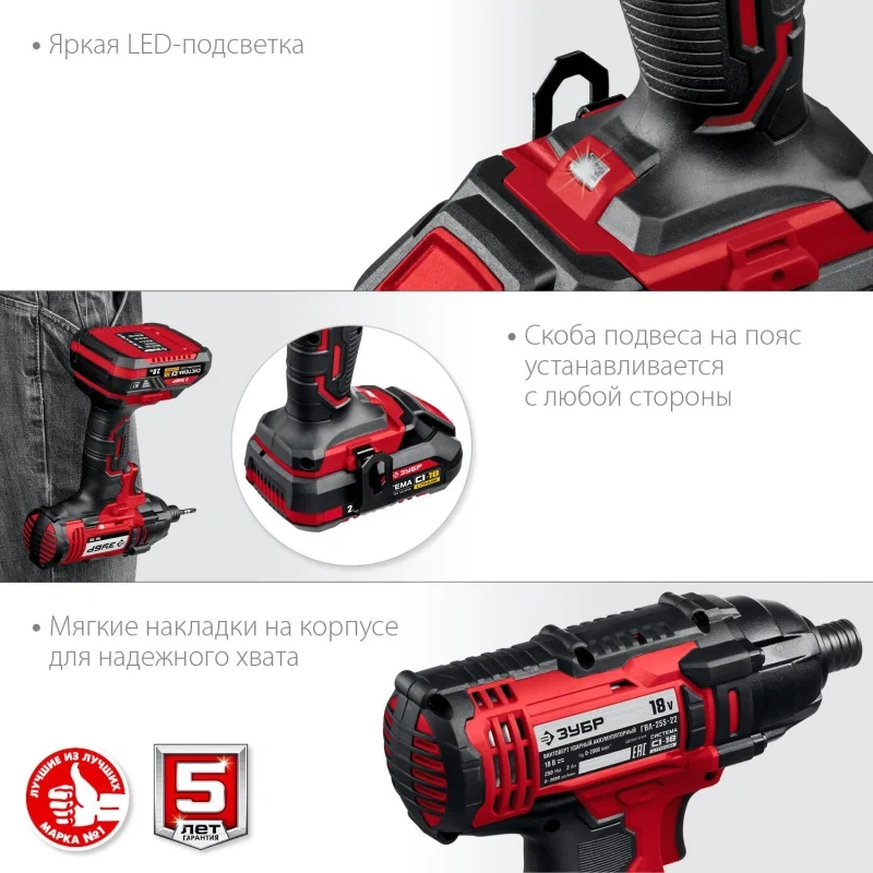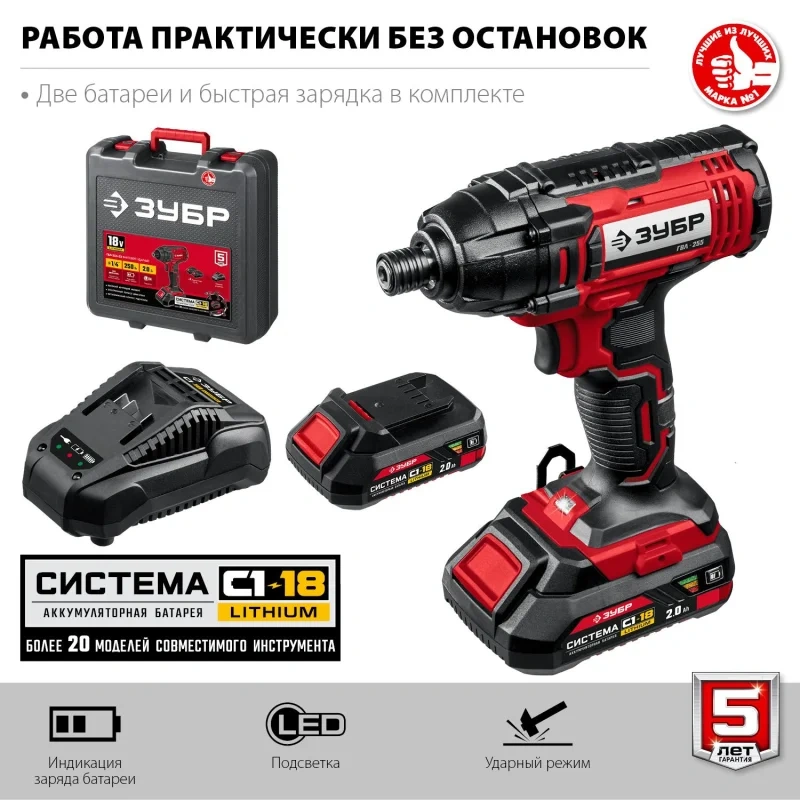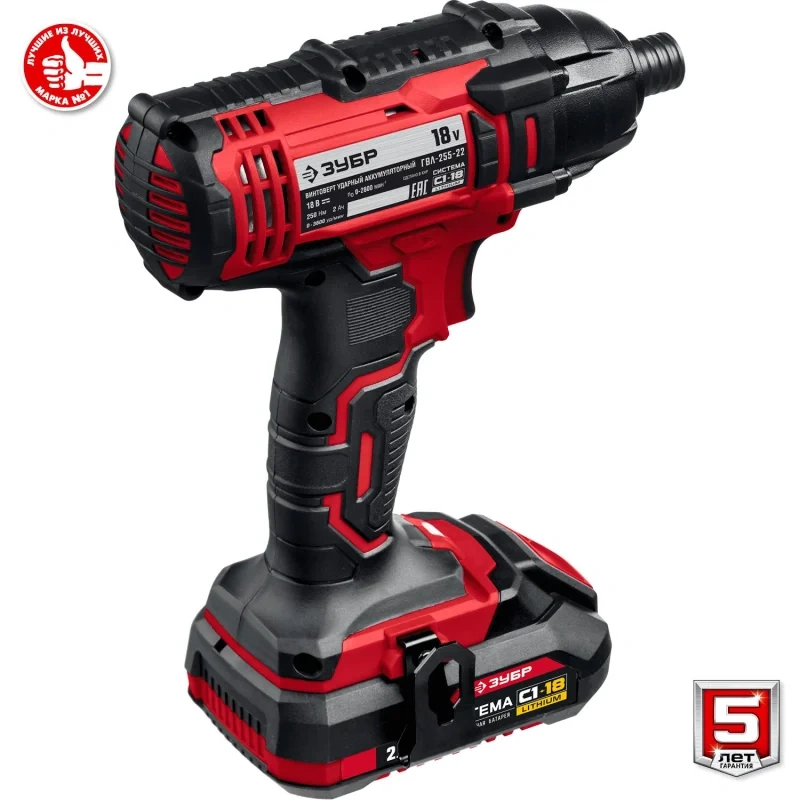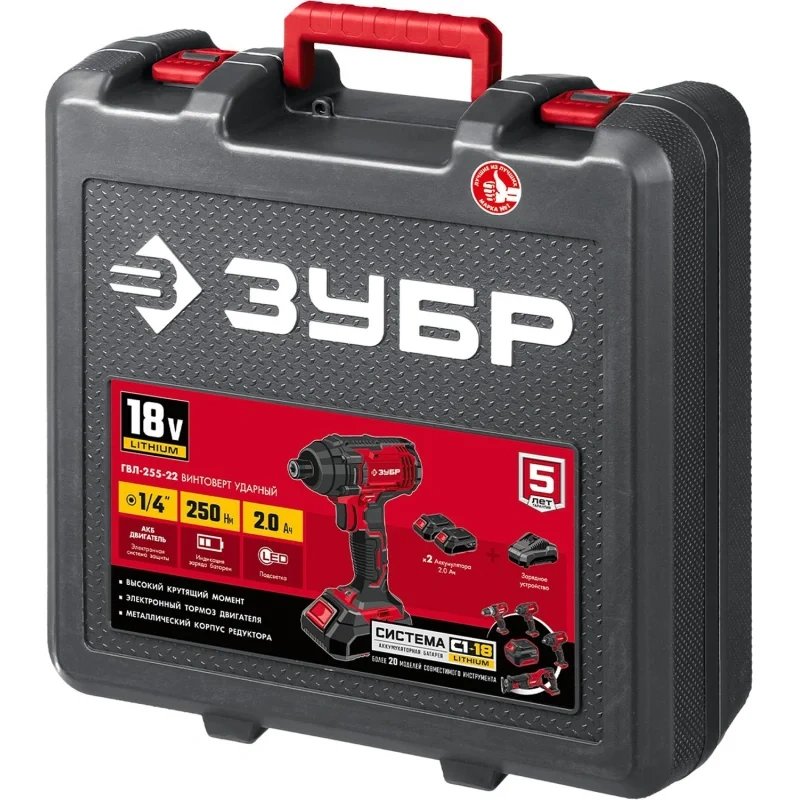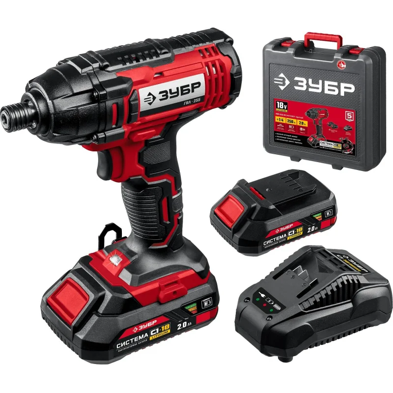 Винтоверт аккумуляторный ударный ЗУБР 18В, 2АКБ (2.0Ач) (ГВЛ-255-22)