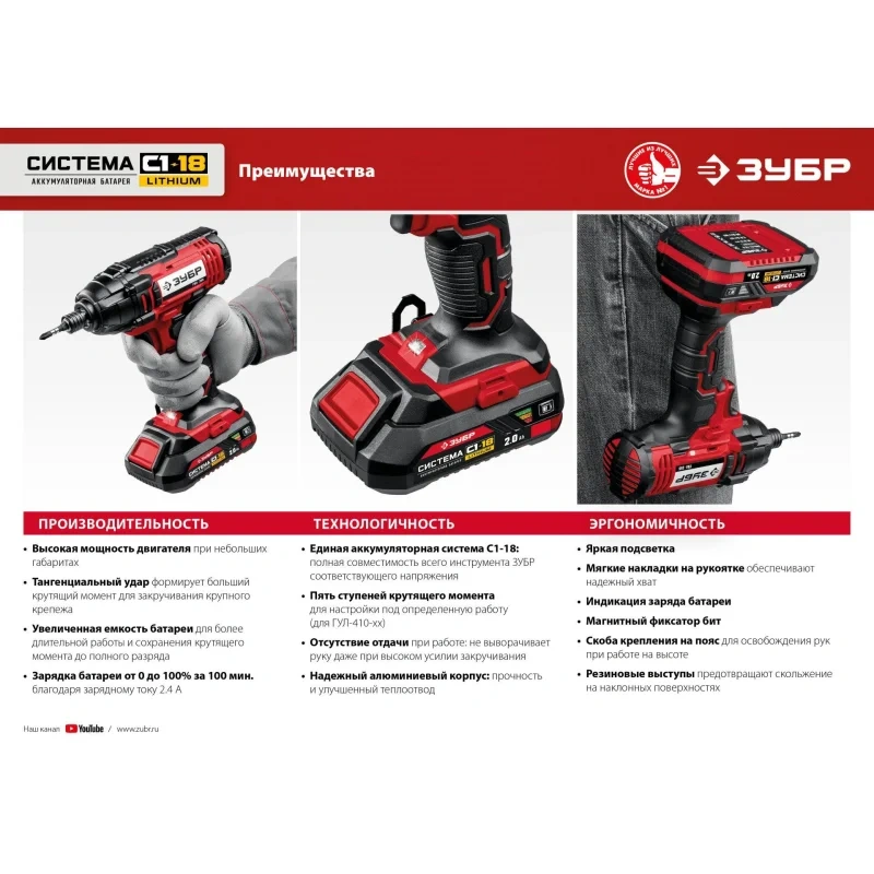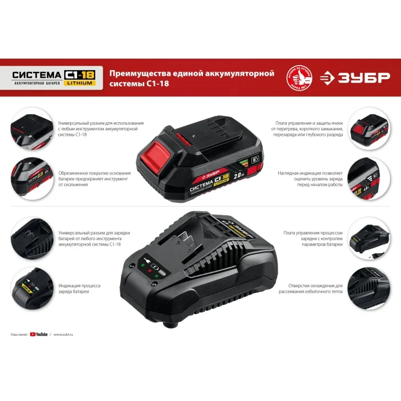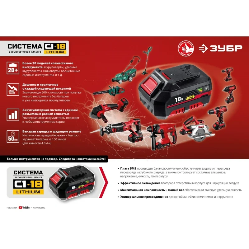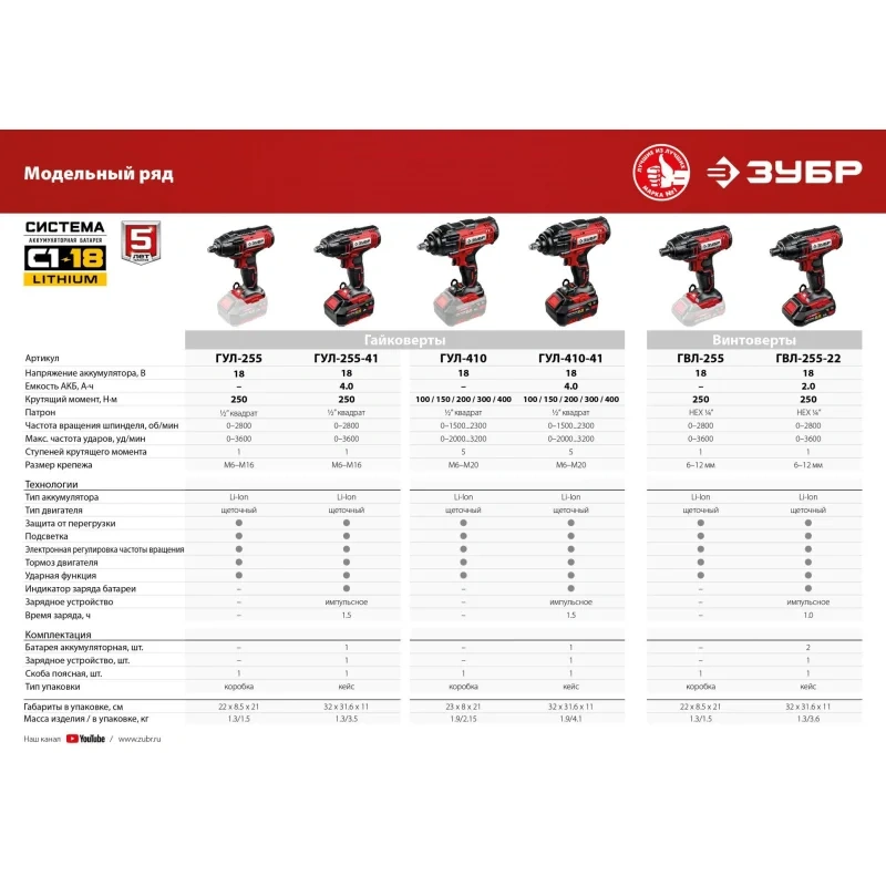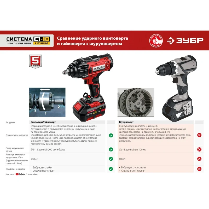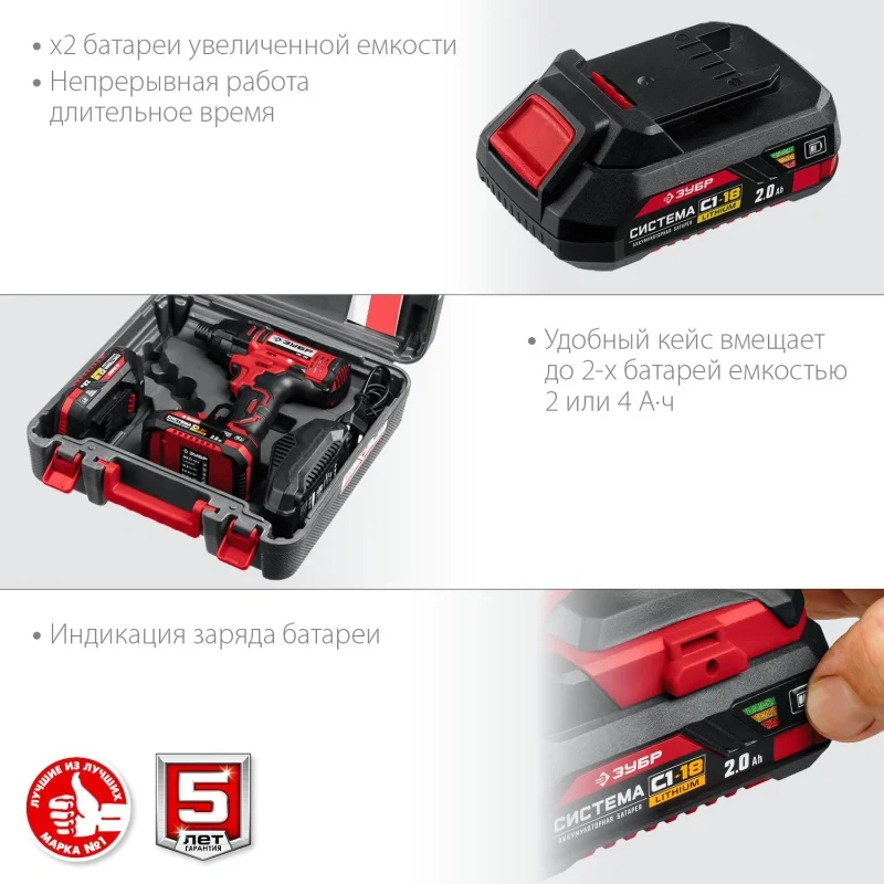 Винтоверт аккумуляторный ударный ЗУБР 18В, 2АКБ (2.0Ач) (ГВЛ-255-22)