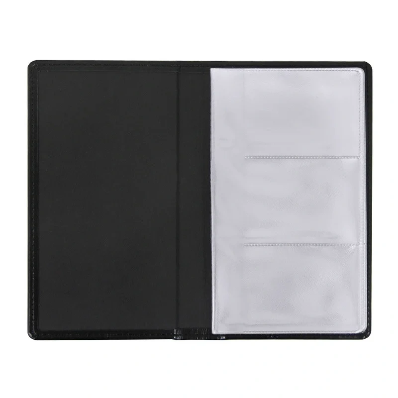 Вертикальная настольная визитница Attache из коллекции «Каньон» имеет строгую обложку из искусственной кожи черного цвета, размер — 110×200 мм. Внутренний блок рассчитан на 96 визиток. Карманы для визиток изготовлены из прозрачного полипропилена. Материал обложки подходит для всех видов полиграфического тиснения, имеет защитное покрытие от механических повреждений. Каждое отделение предполагает возможность хранения