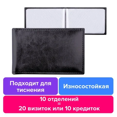 Визитница Brauberg Imperial на 20 визиток, черная, под гладкую кожу