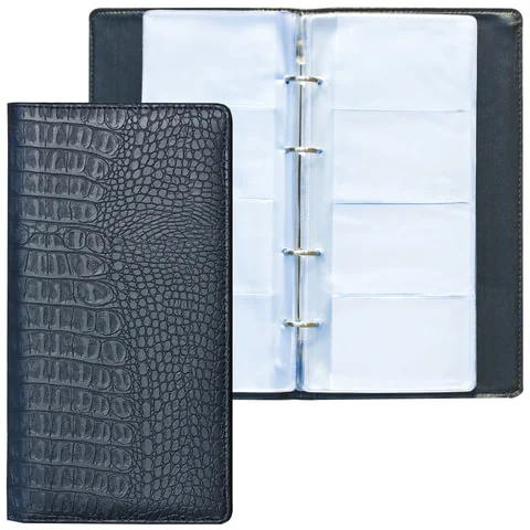 Визитница Brauberg Cayman на 240 визиток, черная, под крокодиловую кожу