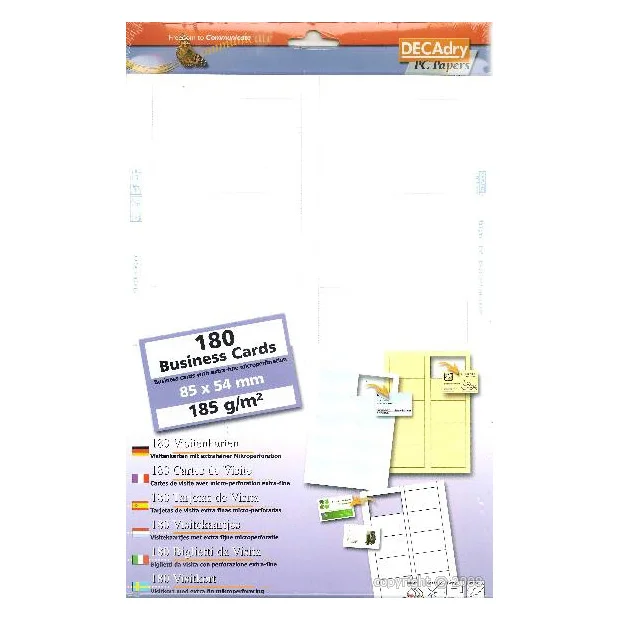 Визитные карточки Decadry белые, А4, 180 шт, 18 листов