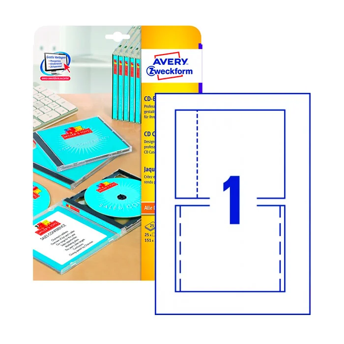 Вкладыши для CD/DVD Avery Zweckform C32250-25, белый, 151x118мм, 1шт на листе А4, 25 листов