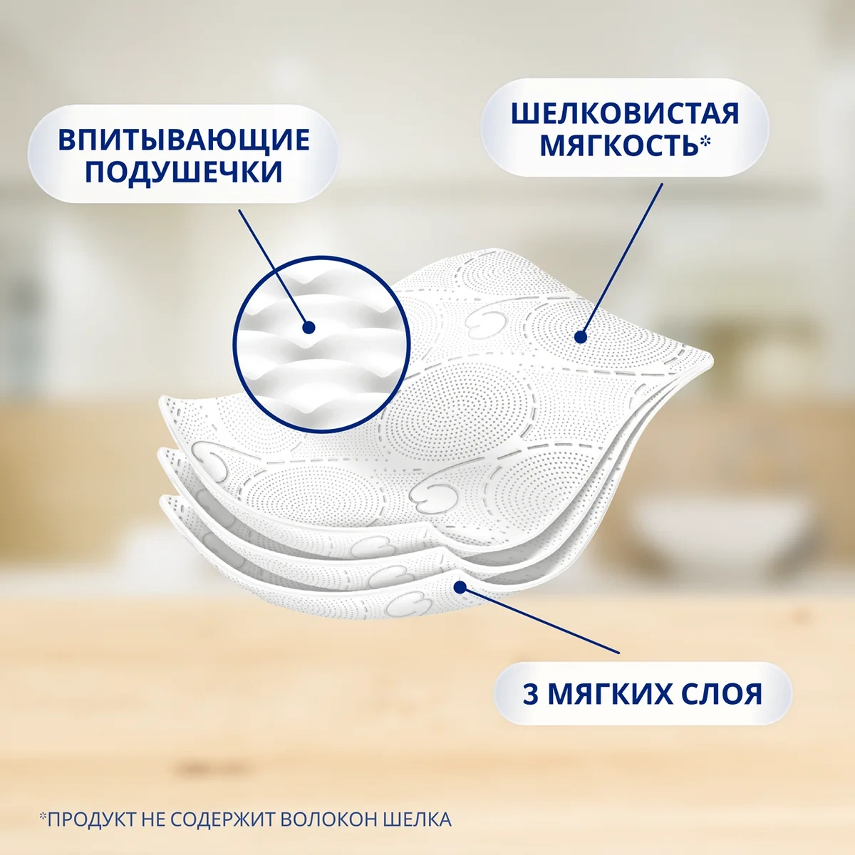 Листы ультрамягкой белой туалетной бумаги пропитаны специальным лосьоном с экстрактом алоэ, обеспечивающим бережный и эффективный уход. В составе отсутствуют спирт, парабены, красители и силиконы.Особенности использования
