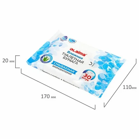 Влажная туалетная бумага Laima с экстарктом алоэ, 30 листов