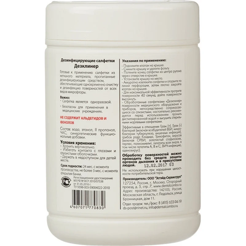 Дезинфицирующие салфетки Дезклинер 200шт, для изделий медицинского назначения