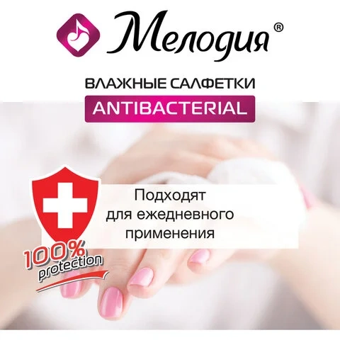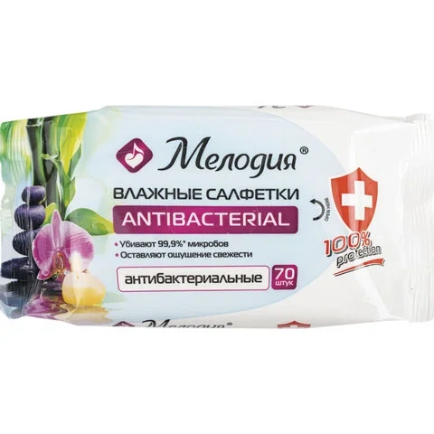 Салфетки влажные 70 шт., МЕЛОДИЯ, антибактериальные, 129897