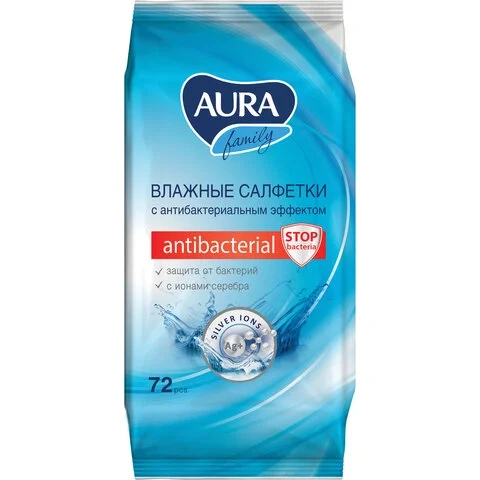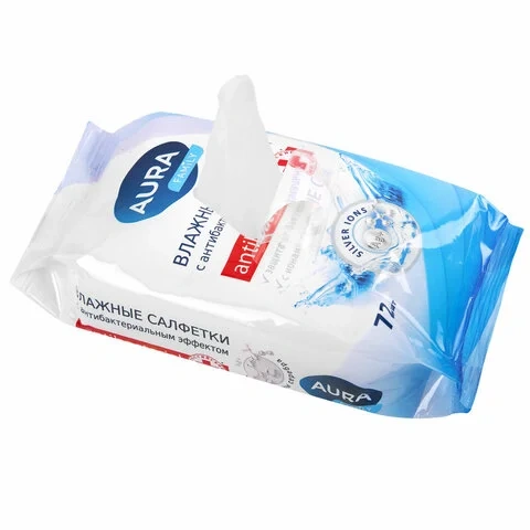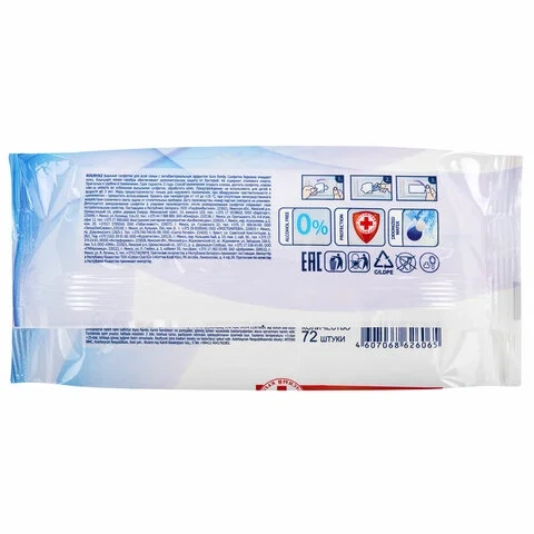 Салфетки влажные Aura 'Family', 72шт., антибактериальные, для всей семьи