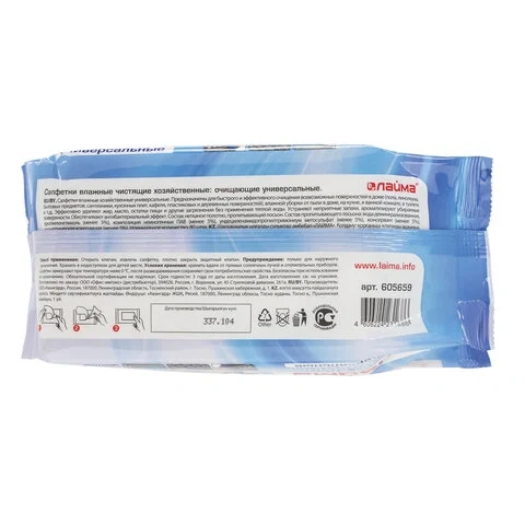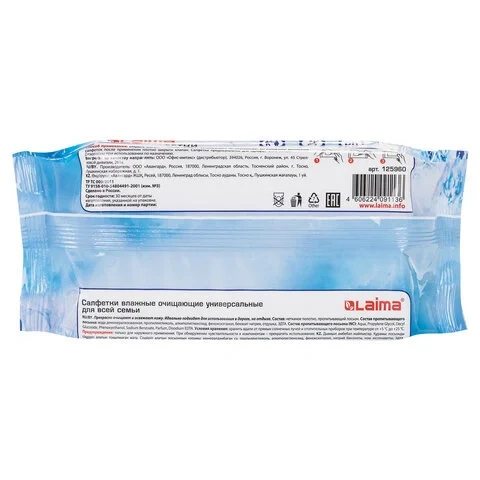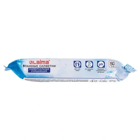 Салфетки влажные Laima универсальные очищающие/ для всей семьи, 50шт, 125960