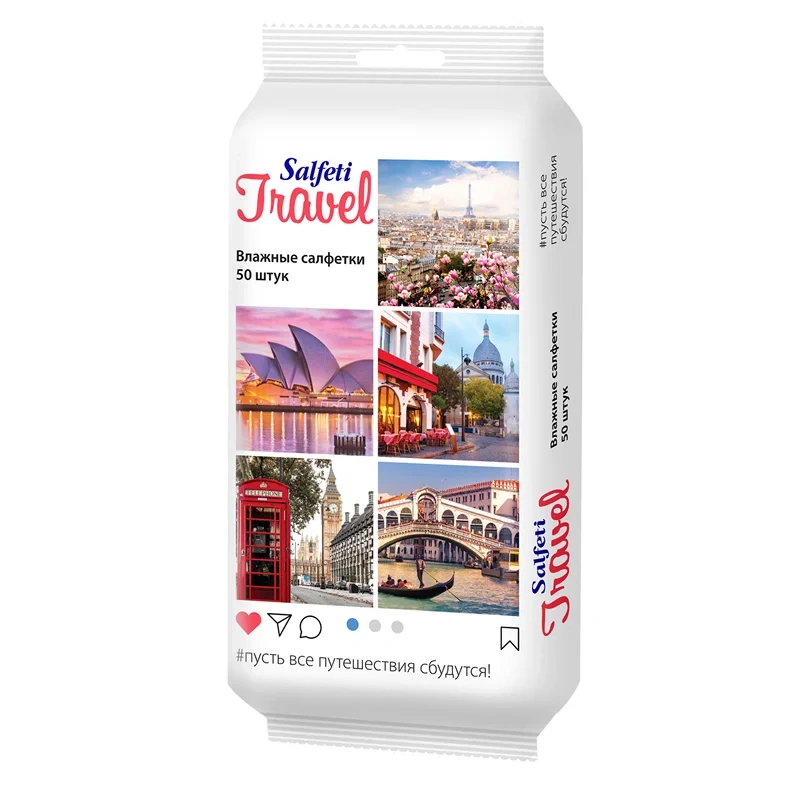 Салфетки влажные Salfeti Travel универсальные, 50шт