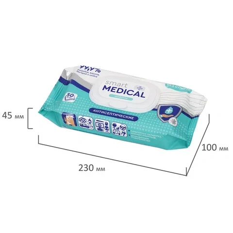 Салфетка антисептическая Smart Medical бесспиртовая, 50шт