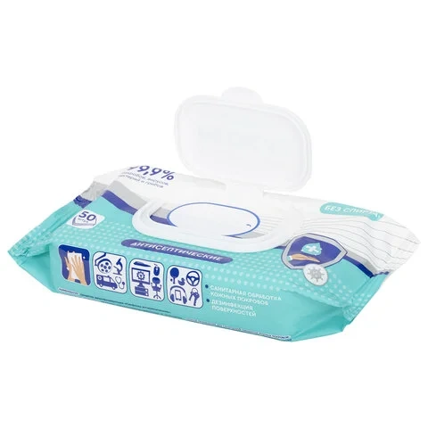 Салфетки влажные Salfeti Medical, 50шт, дезинфицирующие, с пластиковым клапаном