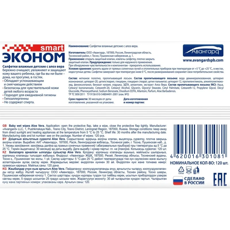 Салфетки влажные Aura 'Ultra comfort', 60шт., детские, с алоэ