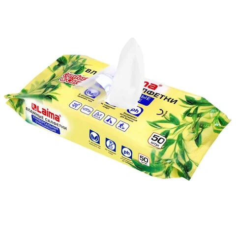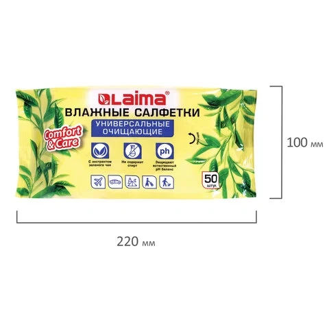 Салфетки влажные Laima универсальные очищающие, с экстрактом зеленого чая, 50шт