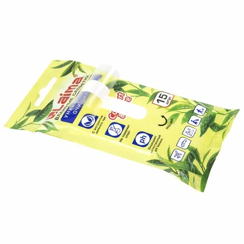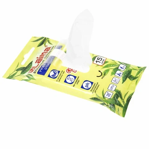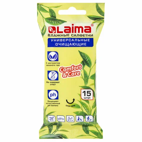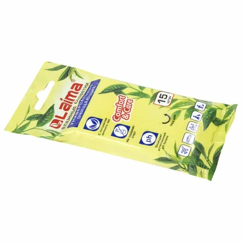 Салфетки влажные Laima универсальные очищающие с зеленым чаем, 15шт, 125956