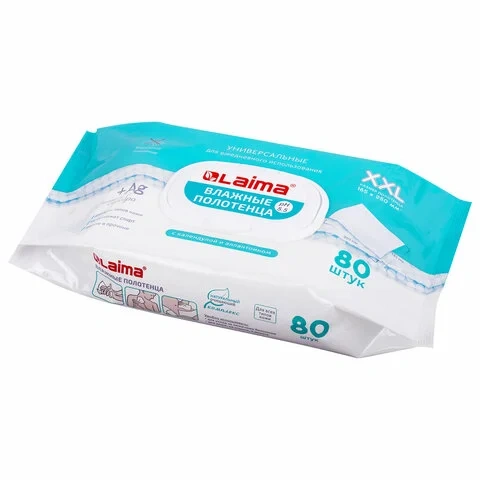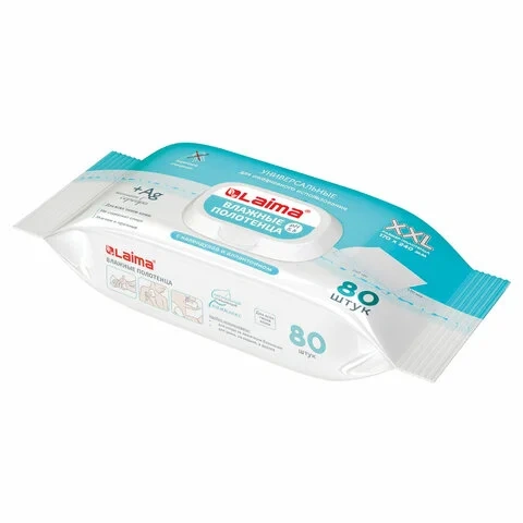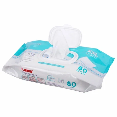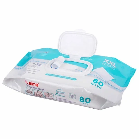 Влажные салфетки Laima XXL, 16.5х25см, 80шт/уп