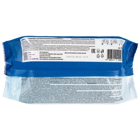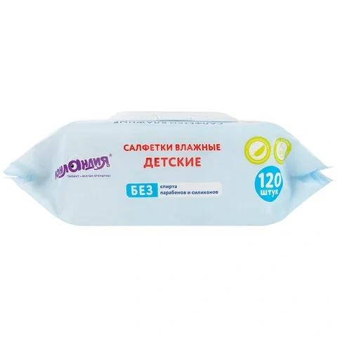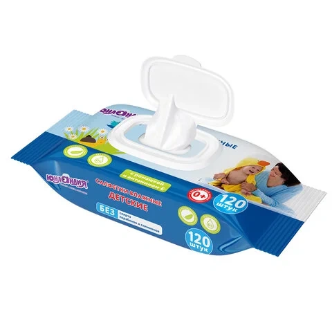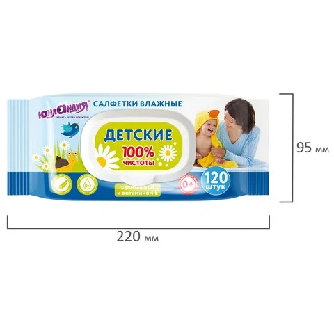 Салфетки влажные 120 шт., для детей ЮНЛАНДИЯ, универсальные, очищающие, клапан крышка, 129893