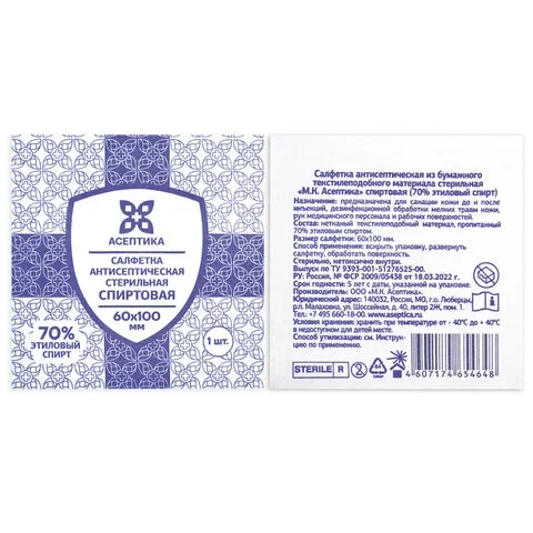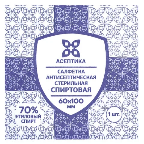 Салфетка антисептическая Асептика 6х10см, 100шт, коробка