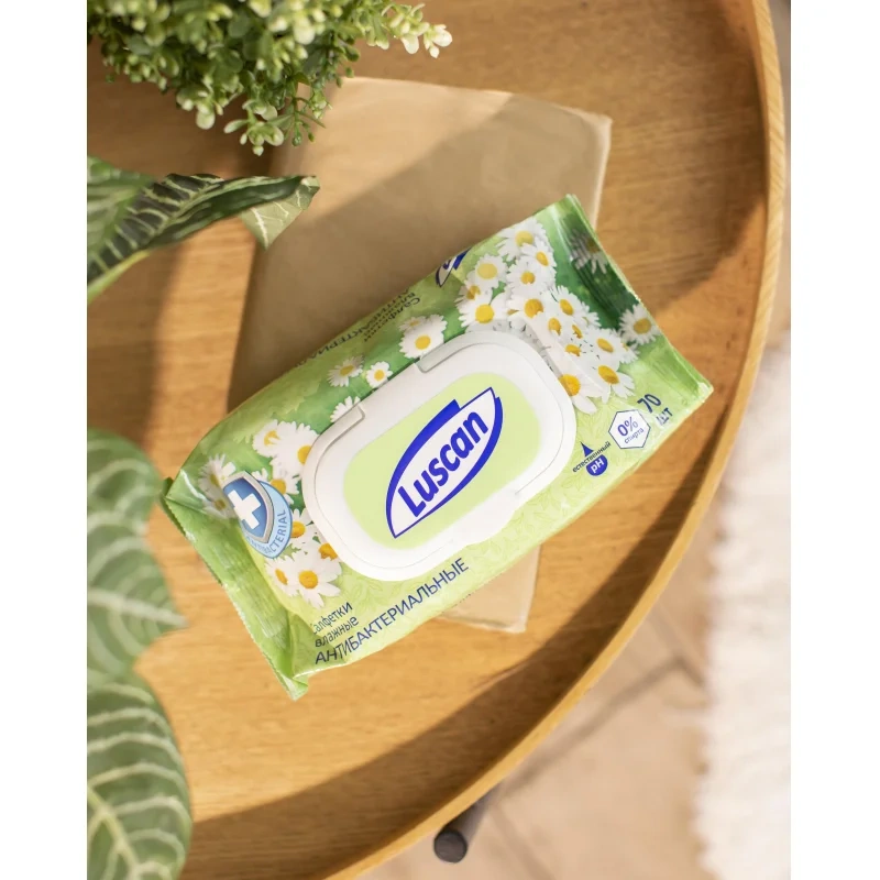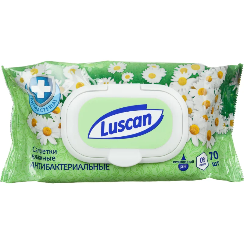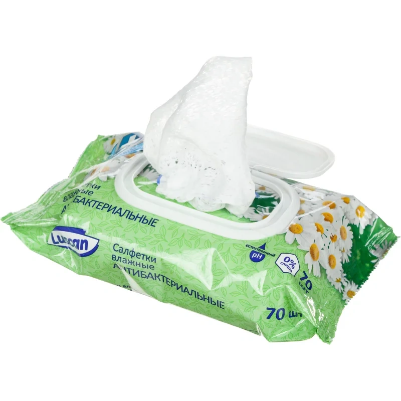 Салфетки влажные Luscan антибактериальные 70шт с крышкой