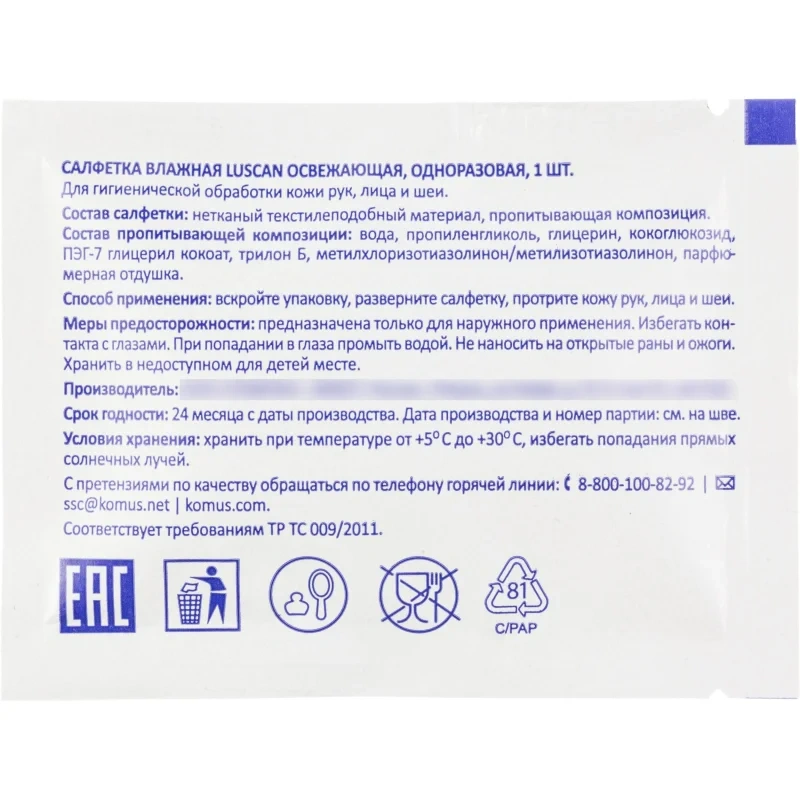 Салфетки влажные Luscan освежающие 20шт/уп