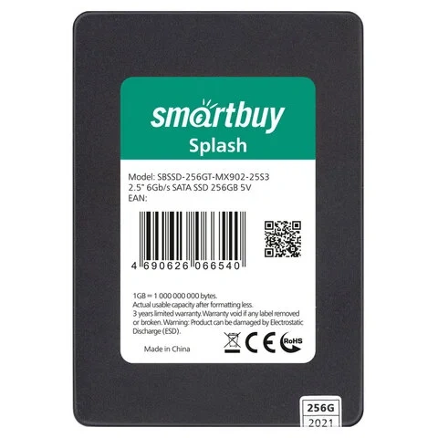Твердотельный накопитель SSD SMARTBUY Splash 256GB, 2,5', SATA III, черный, SBSSD-256GT-MX902-25S3