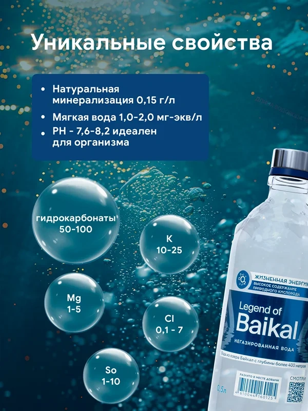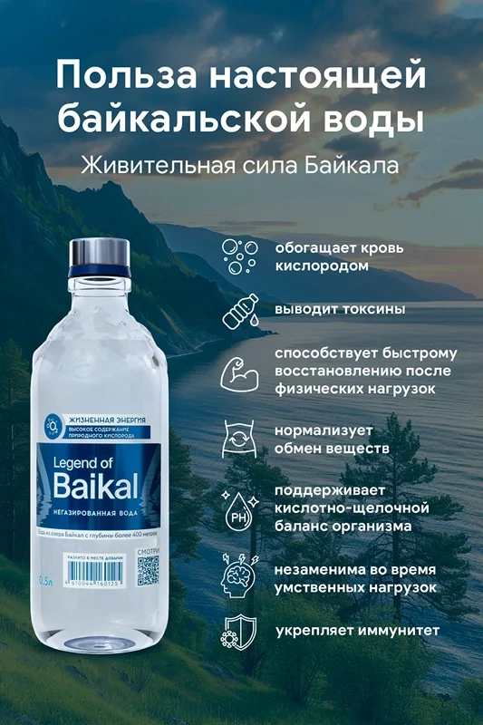 Вода питьевая Legend Of Baikal без газа, 500мл, стекло