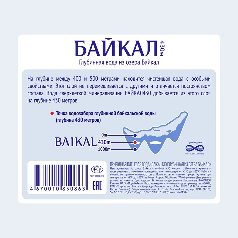 Baikal430 представлена в различных форматах упаковки: от стильных бутылок, которые удобно брать с собой, до больших форматов, подходящих для домашнего использования и офиса.