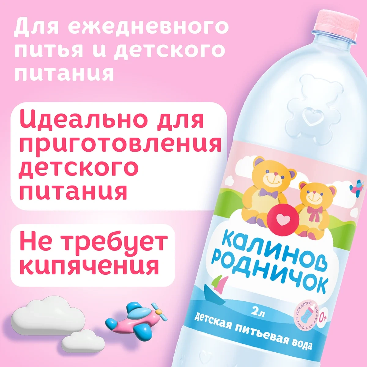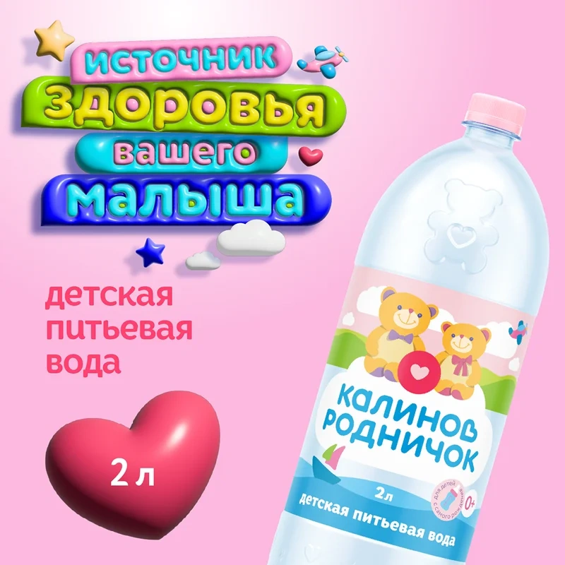 Детская вода Калинов Родничок рекомендована с первых дней жизни малыша, отлично подходит для будущих и молодых мам. Сбалансированный состав воды из природной скважины полезен для растущего организма: Калинов Родничок содержит все необходимые макро- и микроэлементы для развития ребенка. Детской водой, подогретой до 37-40 градусов, удобно разводить каши и сухие смеси, при этом она не требует кипячения. Калинов Родничок в формате 2 л выпускается с любимыми героями мультфильма Барбоскины на этикетке, которые поднимут настроение вашему малышу. Теперь вкусная и полезная вода всегда с вами – дома, на даче или отдыхе с ребёнком. Общая минерализация детской воды – 100-500 мг/л, а общая жесткость – 1,5-6 мг-экв/л. Калинов Родничок – источник здоровья вашего малыша.