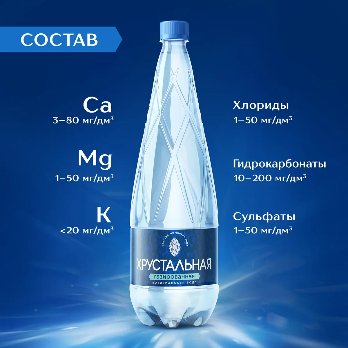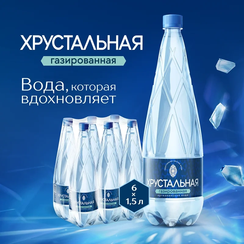 Вода Хрустальная газированная, 1.5л - это не просто питьевая вода, а эстетичное и утонченное решение для повседневной заботы о вашем здоровье. Это высококачественная питьевая природная вода, прошедшая специальную очистку, чтобы предложить вам идеальный мягкий вкус и полезные свойства. Это слабоминерализованная вода с низким уровнем жесткости 0,2-0,4мг/экв/л, что дарит ей особую мягкость. В процессе добычи вода из скважины проходит через сложную систему фильтрации от предварительной очистки, при которой происходит удаление грубых примесей. Благодаря этому достигается необходимая чистота, прозрачность и вкус продукции.