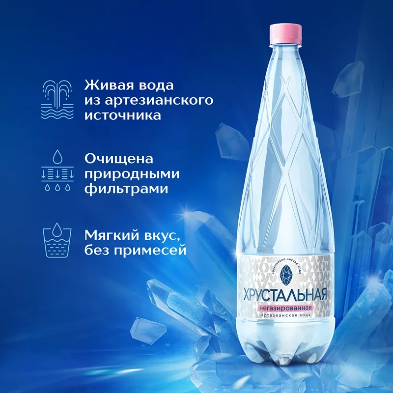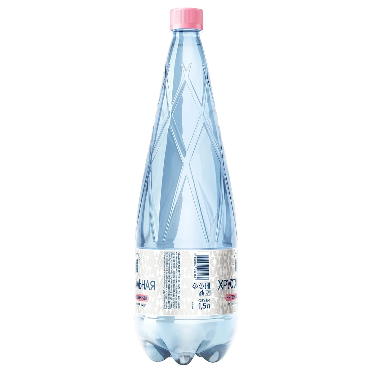 Вода Хрустальная негазированная, 1.5л - это не просто питьевая вода, а эстетичное и утонченное решение для повседневной заботы о вашем здоровье. Это высококачественная питьевая природная вода, прошедшая специальную очистку, чтобы предложить вам идеальный мягкий вкус и полезные свойства. Натуральная минеральная вода с ледников Предгорий Кавказа, которая проходит естественную природную фильтрацию и образует Апшеронский водоносный комплекс на глубине 208 метров. При помощи инновационных технологий вода бережно поднимается по нержавеющим трубам без доступа кислорода, сохраняя при этом свою уникальную природную структуру. Вода идеальна для повседневного употребления.