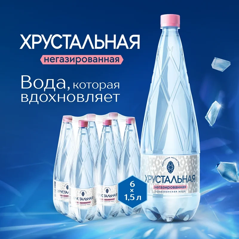 Вода Хрустальная негазированная, 1.5л x 6 шт