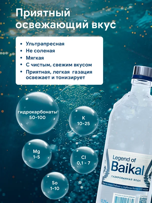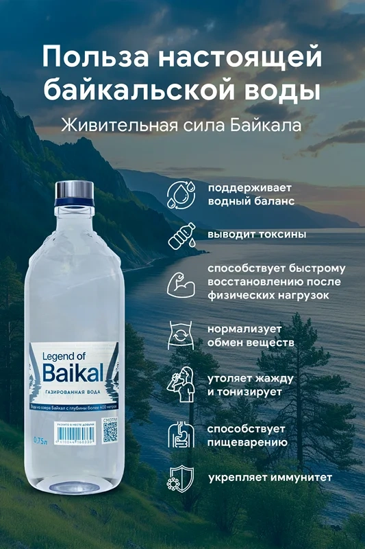 Вода Legend of Baikal питьевая газированная, 750мл x 6 шт
