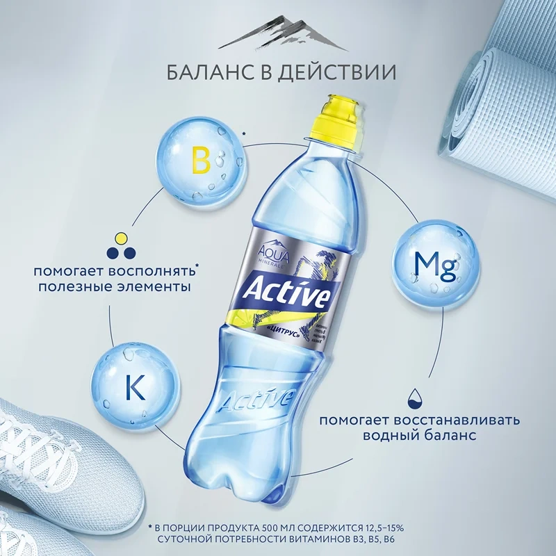 Aqua Minerale Active отлично подходит для восполнения водно-солевого баланса при любых активностях. Aqua Minerale — питьевая вода с удивительно мягким вкусом с более чем 25-летней историей на российском рынке. Aqua Minerale соответствует международным стандартам, а также является многократным лауреатом премий Товар Года.