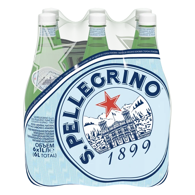 Природная питьевая лечебно-столовая газированная минеральная вода, слабоминерализованная гидрокарбонатно-сульфатная магниево-кальциевая. Минеральная вода натуральной газации, которая добывается из термальных источников, расположенных а предгорье Альп на севере Италии. Тонкий вкус и сбалансированное содержание газа прекрасно подчеркивают вкус еды и делают S. Pellegrino непременным атрибутом гастрономической кухни во всем мире.