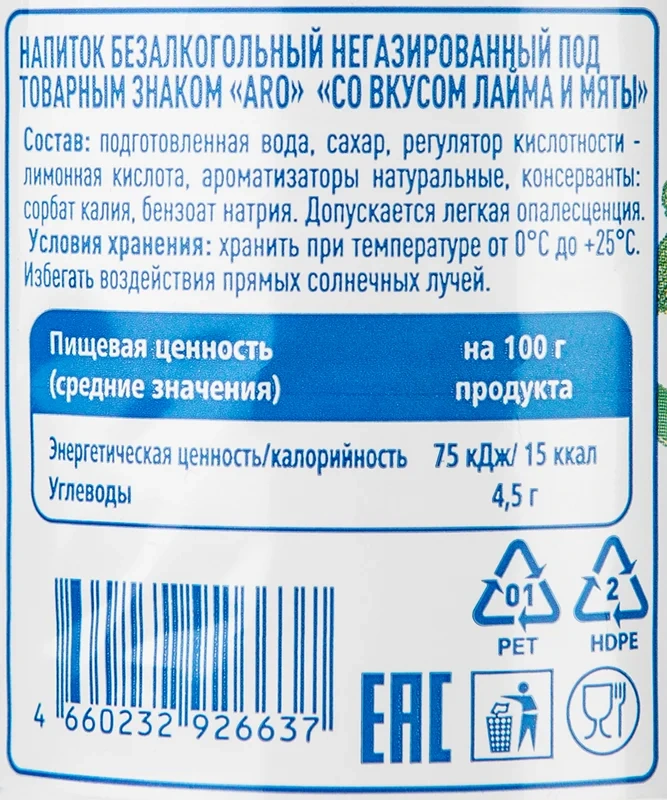 Напиток безалкогольный на натуральных ароматизаторах. Полезные аква свойства артезианской живой чистой воды сочетание вкусов лайма и мяты утоляет жажду, освежает, заряжает энергией. Это освежающий газированный напиток, демонстрирующий приятные оттенки лайма и мяты во вкусе и аромате. Она станет отличным компаньоном разных блюд на вашем столе.