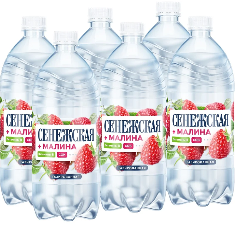 Вода питьевая Сенежская газированная, малина, 1л x 6шт