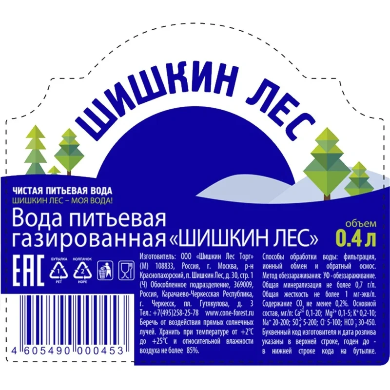 Вода питьевая Шишкин Лес газированная пэт, 0,4л