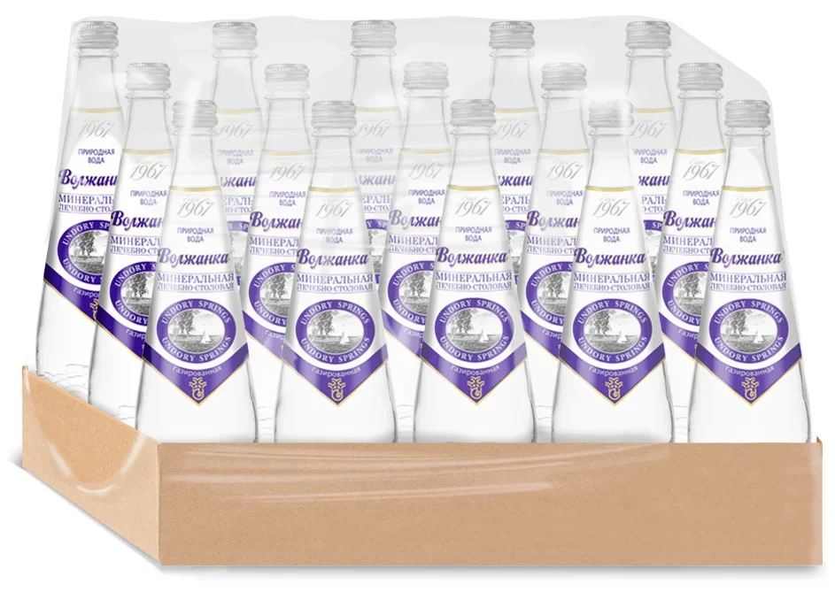 Вода питьевая Волжанка газ, 500мл, стекло, 15шт/уп